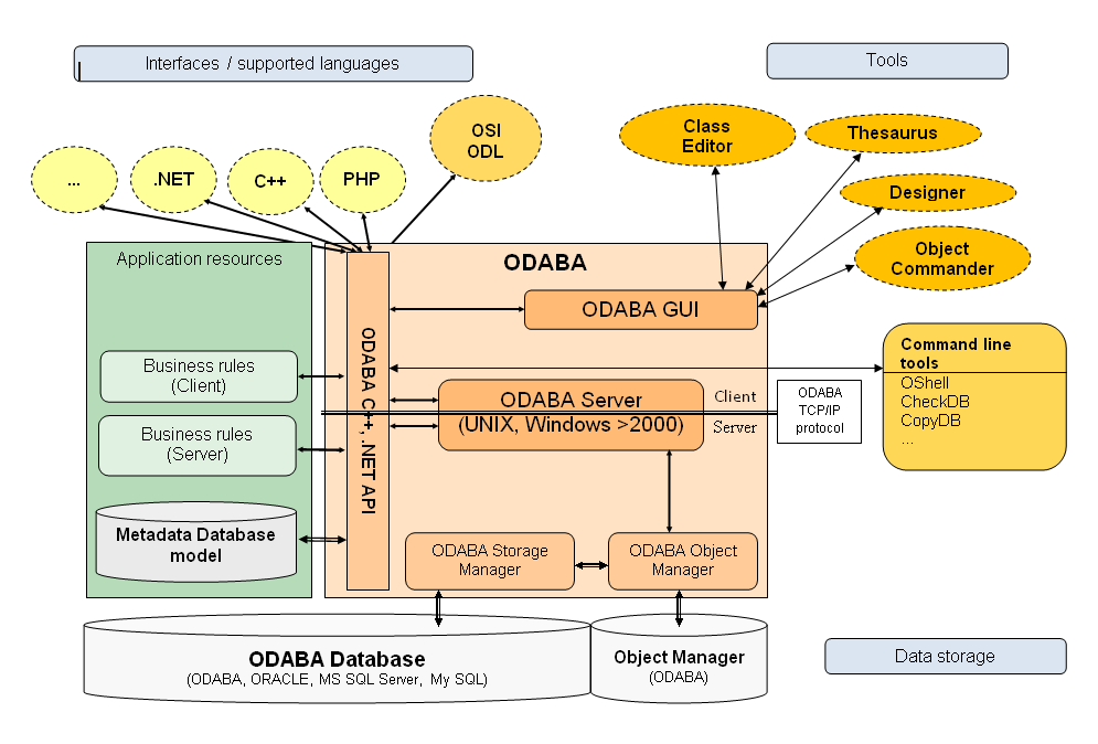 ODABA supports storing data in several relational databases. This is not the most efficient way of accessing data stored in ODABA, but it provides additional data access by well known SQL tools. Thus, running ODABA based on an SQL database might increase acceptance by customers.