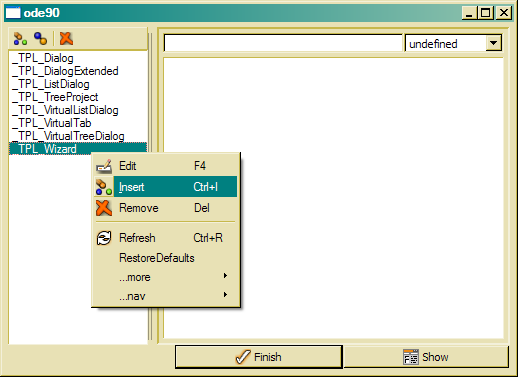 It is also possible to create a new design class by selecting Insert from the class tree context menu and enter the new class name in the insert dialog.