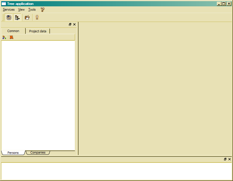 The sample contains two tree controls arranged in a tab (Main::application_trees). In the test mode one may check the design elements (switching tabs, resizing etc.), but you cannot enter data. In order to access data, data sources assigned to controls have to be set.